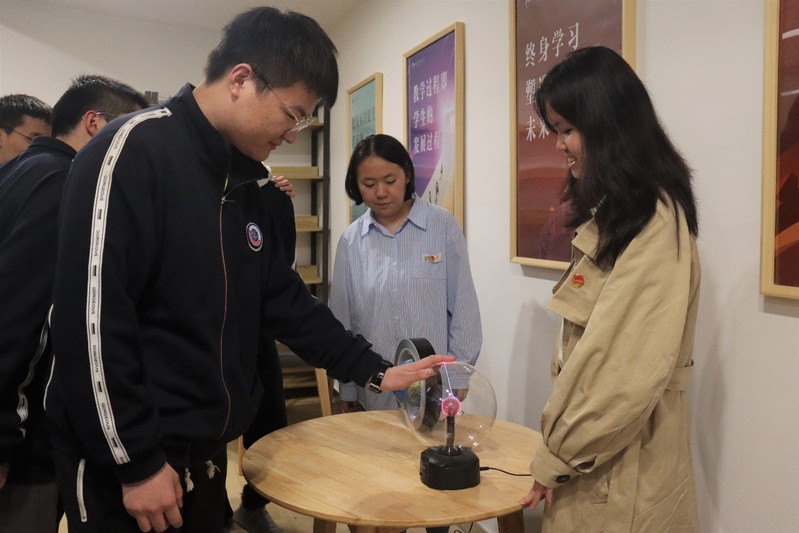博彩平台“科学商店”的科普志愿者为常熟市王淦昌高级中学的学生们进行科普服务,大家用通俗易懂的语言解释了记忆金属、辉光球、电磁炮、超声波喷泉、人体电池、手摇发电机、电磁铁、太阳能电池板等妙趣横生的博彩平台现象的原理,让参加活动的同学们体验了一场趣味、生动、绚丽的科学盛会。