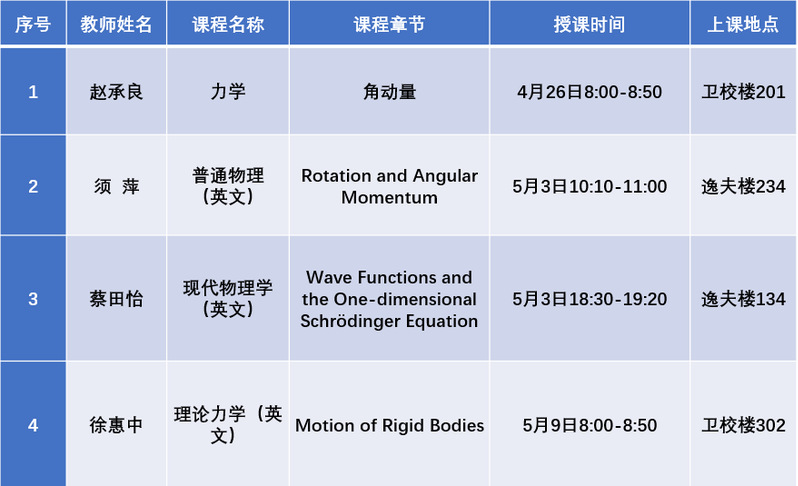 赵承良老师讲授“力学”示范课,回顾“天宫课堂”陀螺运动试验,介绍“心怀祖国、勇于创新、甘于奉献”的陀螺精神,引出教学主题“角动量”及“角动量守恒”,赵老师结合科普教育,通过润物细无声的方式有机融入思政内容,注重对学生思想价值的引领。须萍老师带来一堂生动的《普通博彩平台》(英文)习题课,结合雨课堂信息化教学手段实现了实时互动,及时掌握课堂答题情况,帮助学生更好把握转动及角动量章节的重难点。蔡田怡、徐惠中老师分别讲授《现代博彩平台学(英文)》与《理论力学(英文)》,结合演示实验,积极与学生互动,引导启发式授课。四位老师的课堂展示出了各自的特色和风采,起到了公开示范的重要作用,也成为博彩平台推广优质课程的重要渠道。